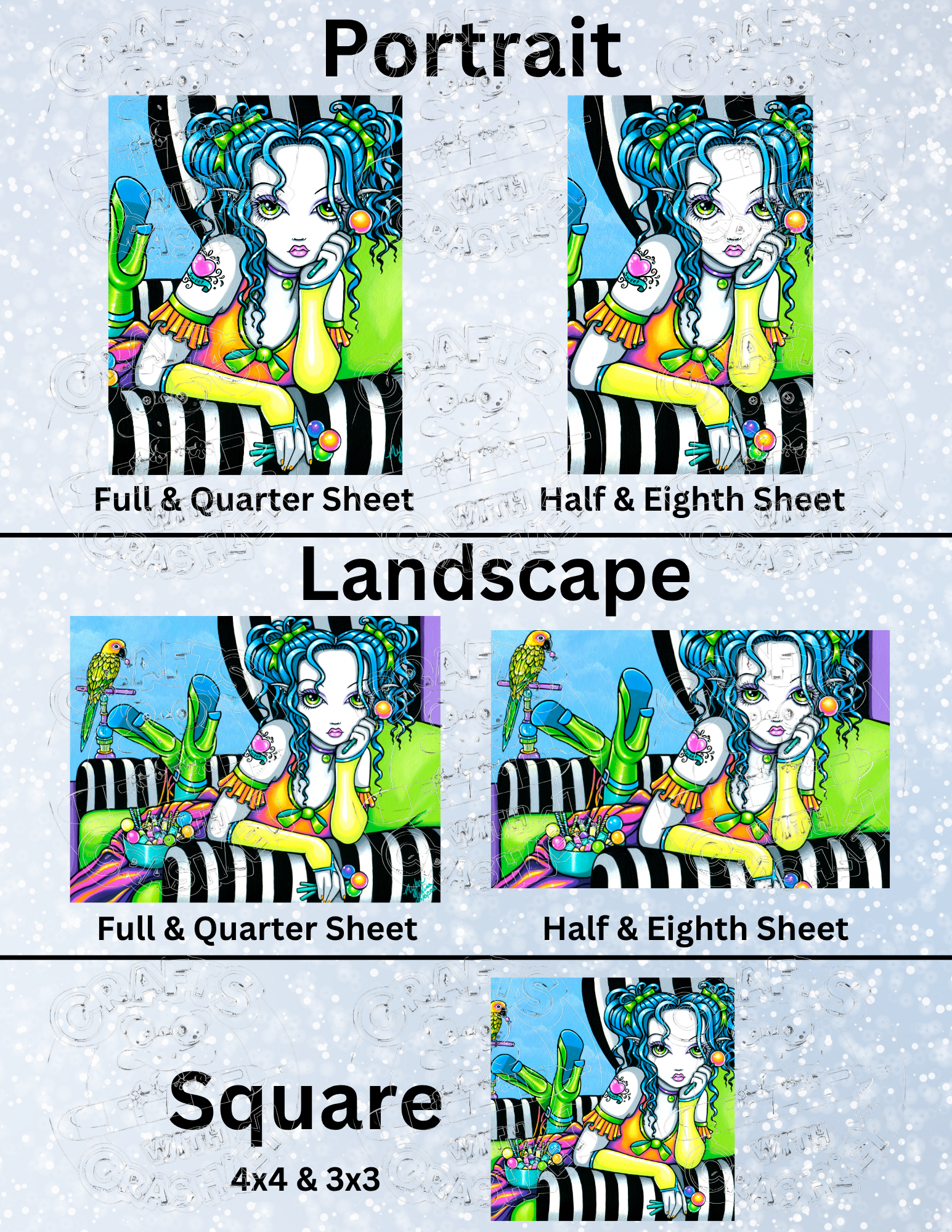 One sided release papers with designs featuring licensed artwork of the amazing ©Myka Jelina!