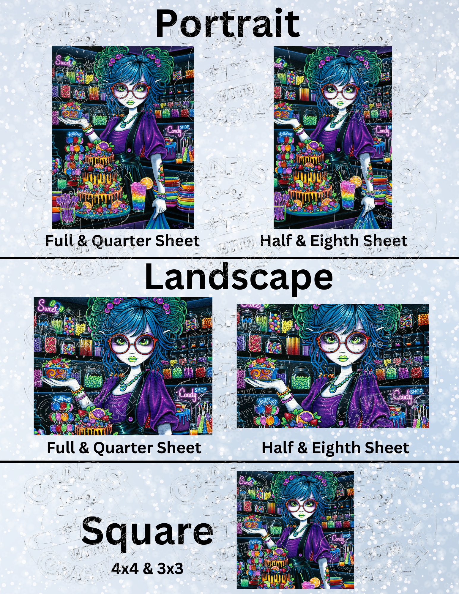 One sided release papers with designs featuring licensed artwork of the amazing ©Myka Jelina!